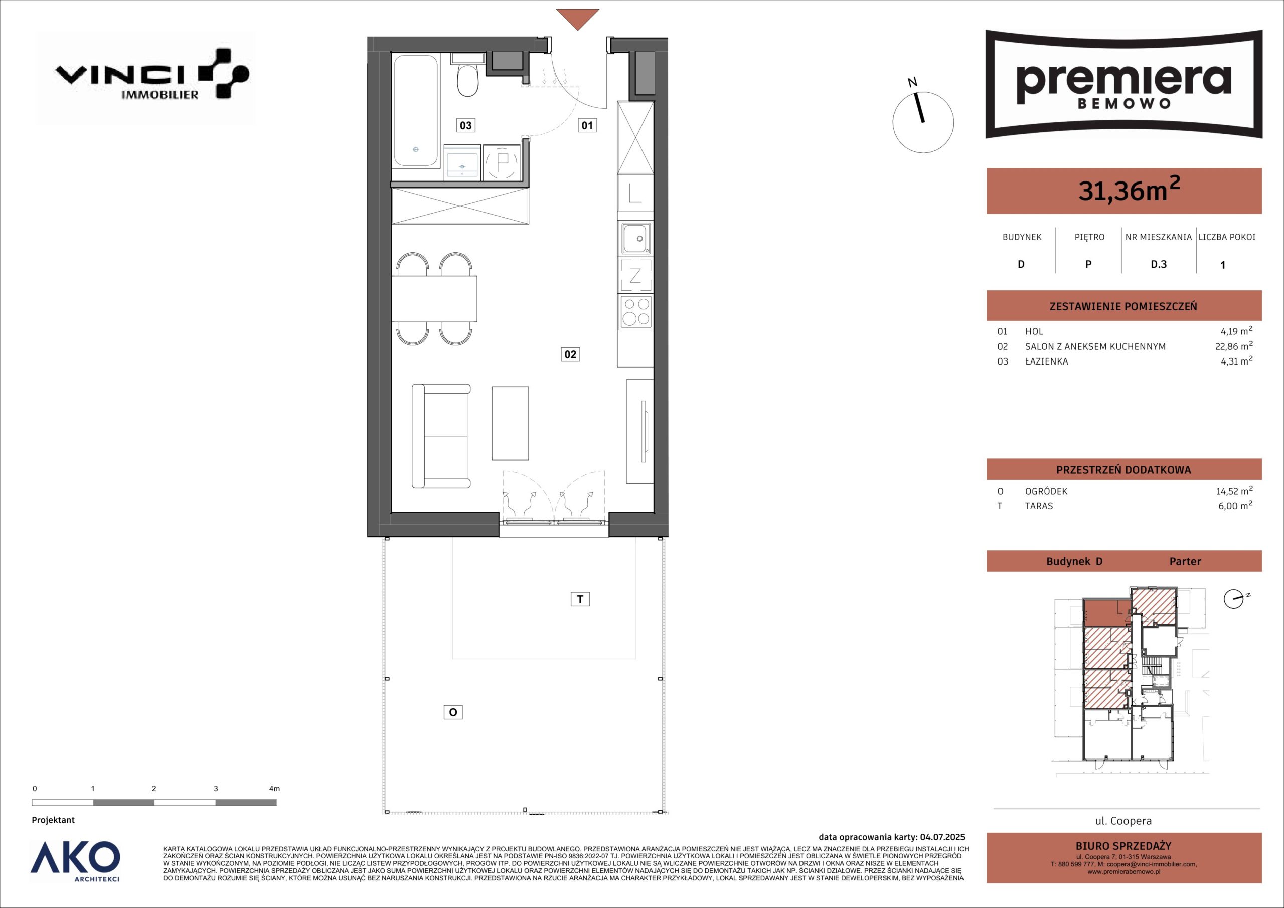 - Ogródek: 14.52 m2